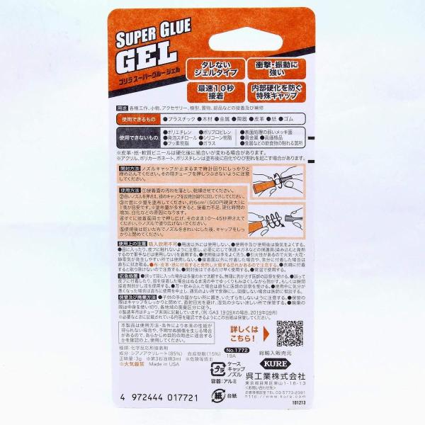 KURE 呉工業 ゴリラスーパーグルージェルタイプ 3g No.1772 強力瞬間接着剤