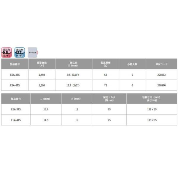 40V対応 TOP工業 ソケットアダプター 差込角12.7mm ESA-4TS 電動ドリル用 強軸ソケット