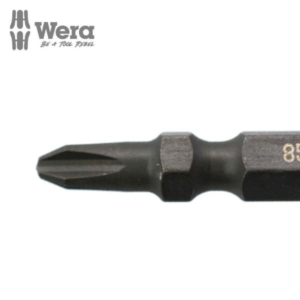 ■高耐久トーションビット WERA社が開発したバイトーションビットは六角軸の中央部細くし、その部分の硬度を特殊焼入れ技術により両先端部より低くし、インパクトドライバーのスイッチを入れた瞬間的な回転力の衝撃を細くなった軸部のネジれによって緩和させ、ネジ穴のナメやビット先端部分のカケを最大限の防ぐ構造です。