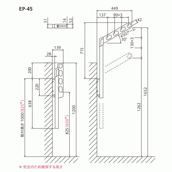 洗濯物干し ベランダ 屋外 竿受け 物干し金物 腰壁付け 2本1組×1セット EP-45-SB アーム450mm ポール778mm