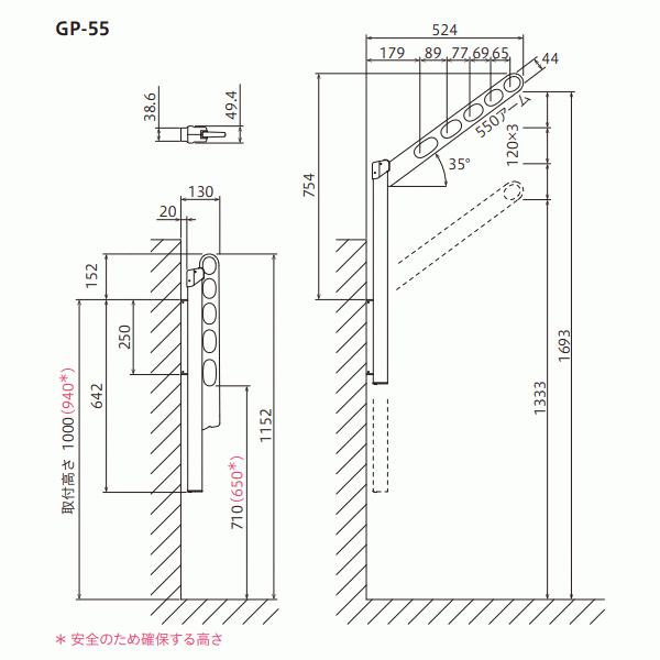 ベランダ 物干し 腰壁用 ホスクリーン 上下式 GP-55