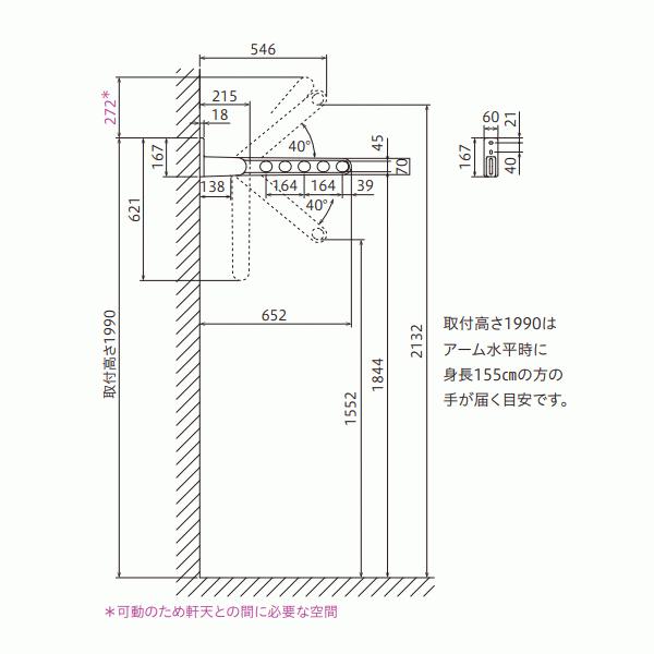 物干しからの総幅目安:870mm