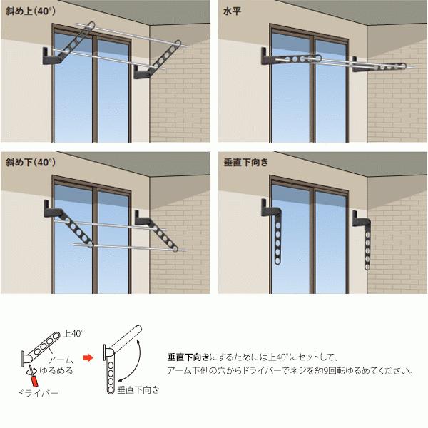 洗濯物干し ベランダ 屋外 竿受け 物干し金物 腰壁付け 2本1組×1セット GP-55 アーム550mm ポール725mm 上下式