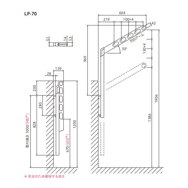 ベランダ 物干し 腰壁用 ホスクリーン 上下式 LP-70