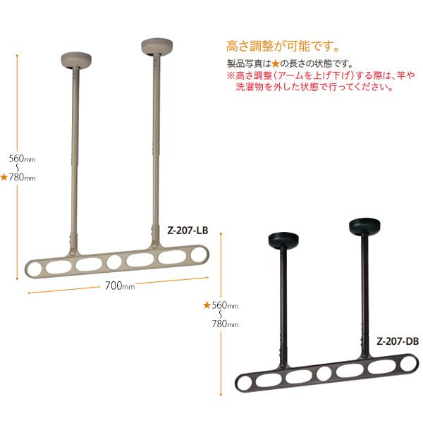 洗濯物干し ベランダ 屋外 竿受け 物干し金物 軒天用 2本1組×1セット Z型 Z-207 アーム700mm 全長560~780mm 傾斜天井
