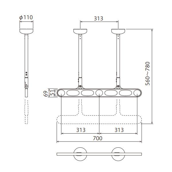 ★物干し時の総幅目安:1130mm
