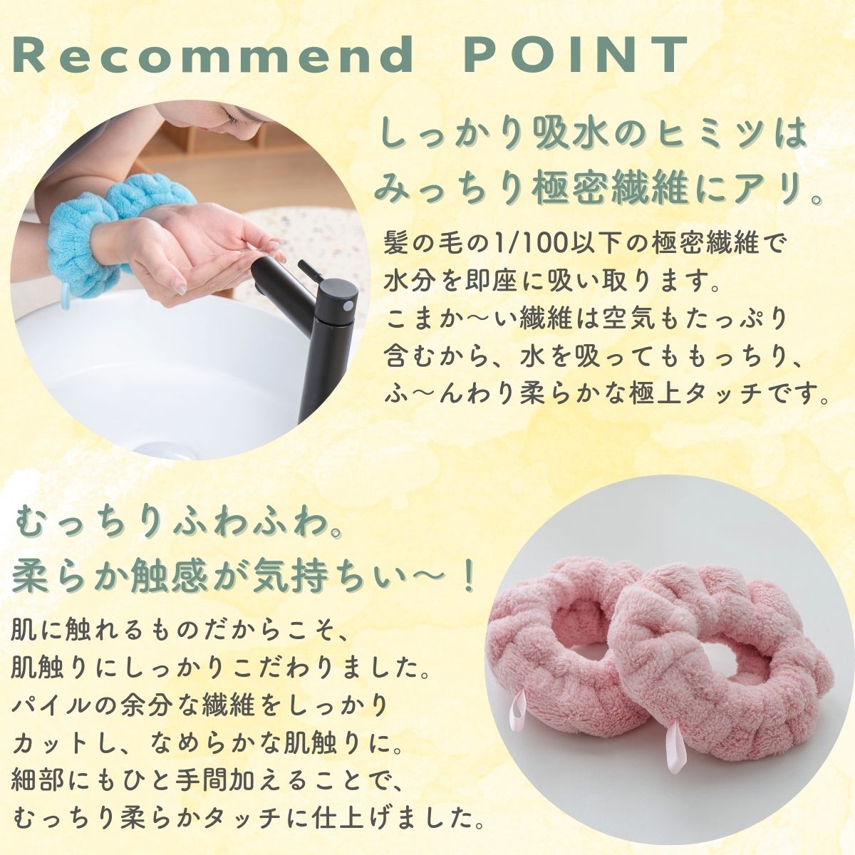 綿の5倍の吸収力 吸水性抜群 マイクロファイバー タオル まとめ買い 34×80cm1セット2個組 可愛いカラー 破れにくい リストバンド フックに掛けられるリボン付き 吸水 洗顔 リストバンド 手首バンド ウォッシュバンド 袖濡れ防止 服濡れ防止 シュシュ マイクロファイバー 速乾 ふわふわ 柔らかい 吸水タオル 髪 お風呂上がり 伸縮性 手洗い用手首バンド 手首用汗止め メイク 洗い変え