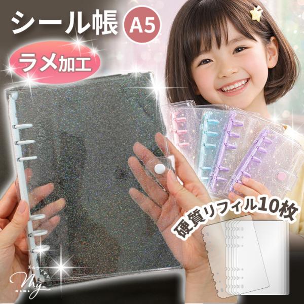 シール帳 キラキラ ラメ クリアバインダー A5 リフィル10枚付セット 全4色 透明 ■ はがせる 女の子 かわいい おしゃれ シール手帳 ■
