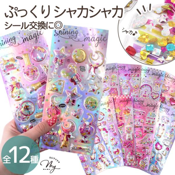 ぷっくり シャカシャカシール スパークル 全12種 ■ シール交換 シール帳 ドロップシール かわいい デコ プレゼント 小学生 ■