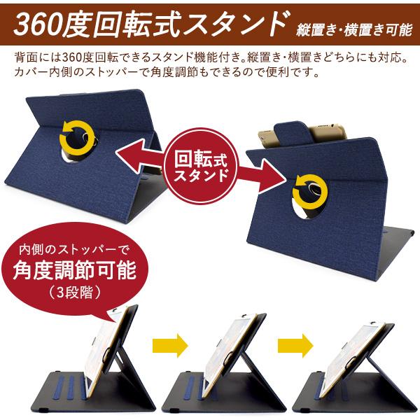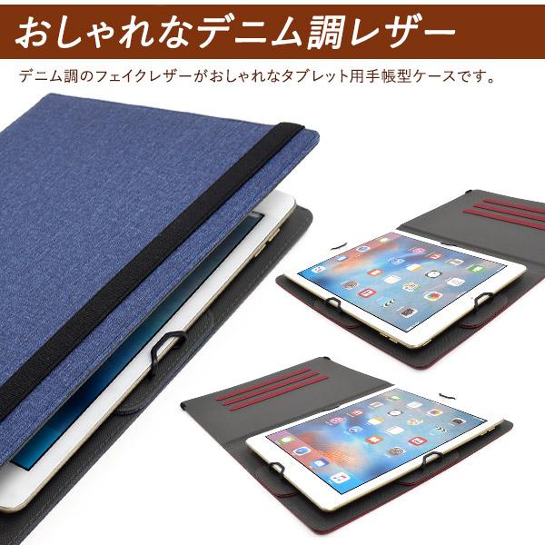 デニム調のフェイクレザーがおしゃれな手帳型タブレットケース。