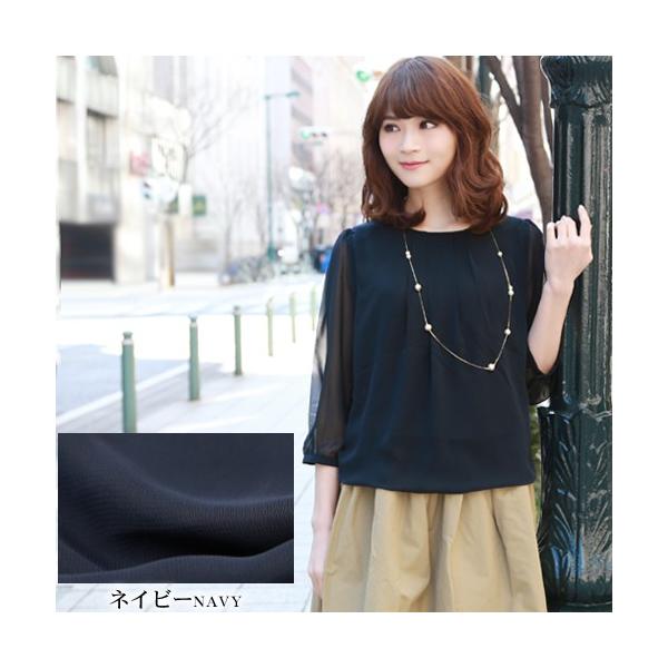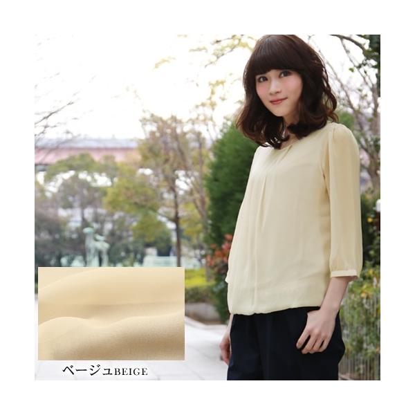 シフォン胸元タック裾バルーン7分袖ブラウス レディース フォーマル