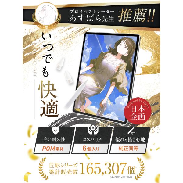 【抜群の描き心地】 純正 と同じ POM 素材を採用。画面からの応答性が高く、なめらかで滑りにくい描き心地を追求。イラスト制作や漫画、文字やメモ書きなど多様な用途にお使いいただけます。