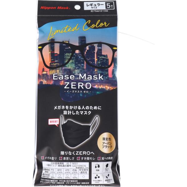 イーズマスクゼロ EaseMaskZERO メガネが曇らないマスク レギュラーサイズ アーバンブラック 5枚入り X10パック