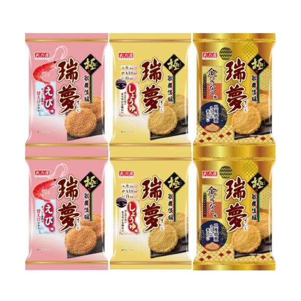 天乃屋 歌舞伎揚瑞夢 三種アソート各2袋計6袋(えび味、しょうゆ味、金のきなこ味 )