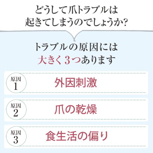 市中の類似製品と比較し、爪の凹凸を目立ちにくくするカオリン、爪に潤いをたっぷり与えてくれるイノンド種子エキス、爪補修の働きがある加水分解コウキオリンを配合することで、より保湿保護して爪を健やかに保つ製品となっています。