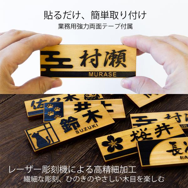 表札 浮き彫り ひのき 木製 プレート 貼るだけ ポスト 玄関 看板 刻印 おしゃれ シンプル ねこ ふくろう 会社