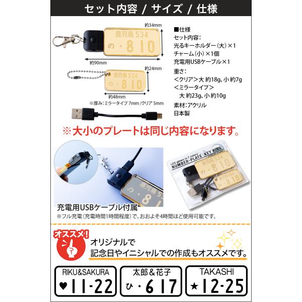 光る ナンバープレート キーホルダー LED かっこいい おしゃれ ミラー 車 自動車 カーナンバー