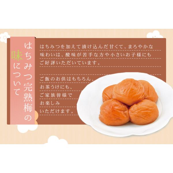 上品な甘さが感じられ、酸味も少なく食べやすい梅干しになっております。