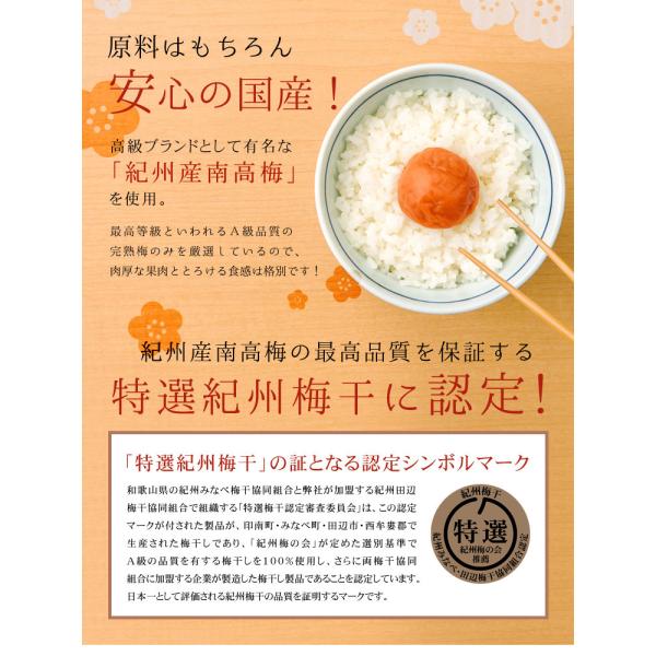 上品な甘さが感じられ、酸味も少なく食べやすい梅干しになっております。