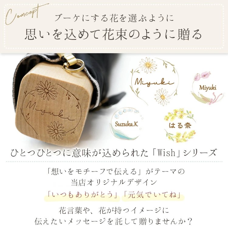 リボンのような刺繍と、スクエア型の木製手元もアクセント