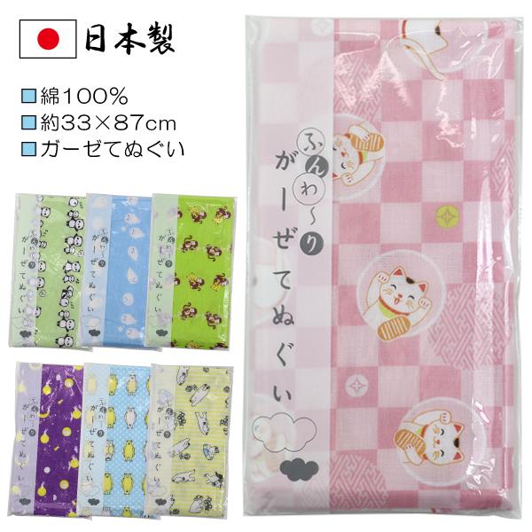 日本製 綿100% ふんわ〜り がーぜてぬぐい ガーゼ 手ぬぐい アニマル柄 個包装 約33×87cm 【送料無料(税込1000円のお買上げが条件)】