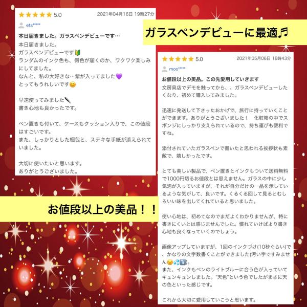 透き通るような美しい色で、ガラスペン独特の儚い美しさを堪能いただけます。