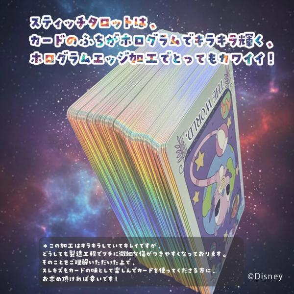 ホログラムエッジのキラキラとした可愛いデッキは、タロットを初めて手にする方から、経験者まで、すべての方にスティッチの世界観を通じてインスピレーションを与えてくれるでしょう。