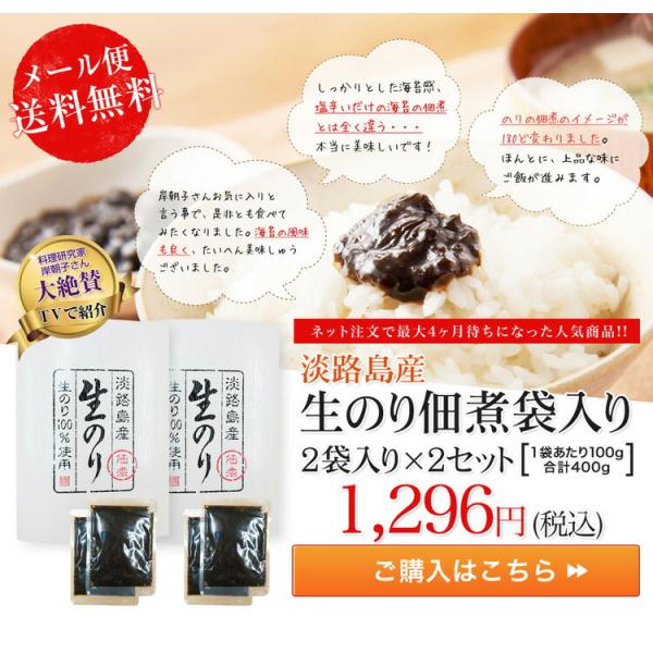 メール便送料無料 淡路島生のり佃煮袋入100g×2袋×2セット★大人気商品を送料無料でお試し♪ 生海苔つくだに つくだ煮 海苔 淡路島 鳴門千鳥本舗