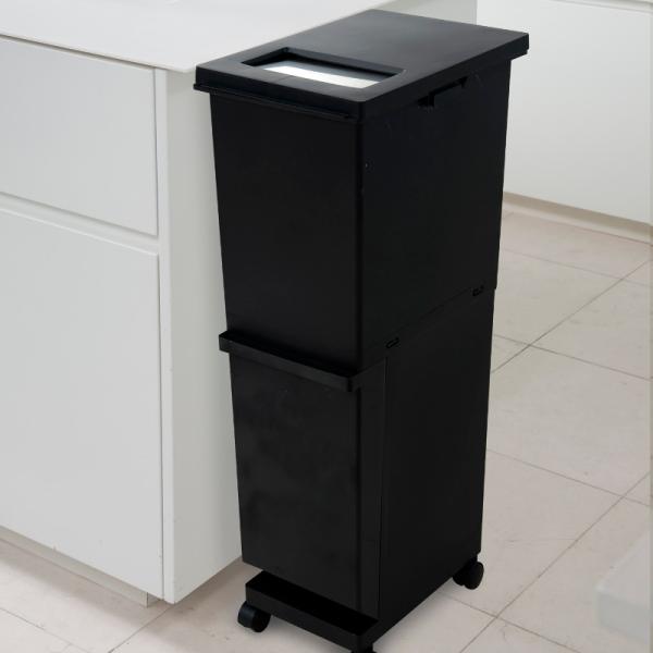 分別 ごみ箱 2段 スリムペール 55L 上段32L 下段23L キャスター付き 縦型 ダストボックス 55S 組立式 日本製 UNEED ユニード 新輝合成省スペースでゴミを分別できるスリムなダストボックス