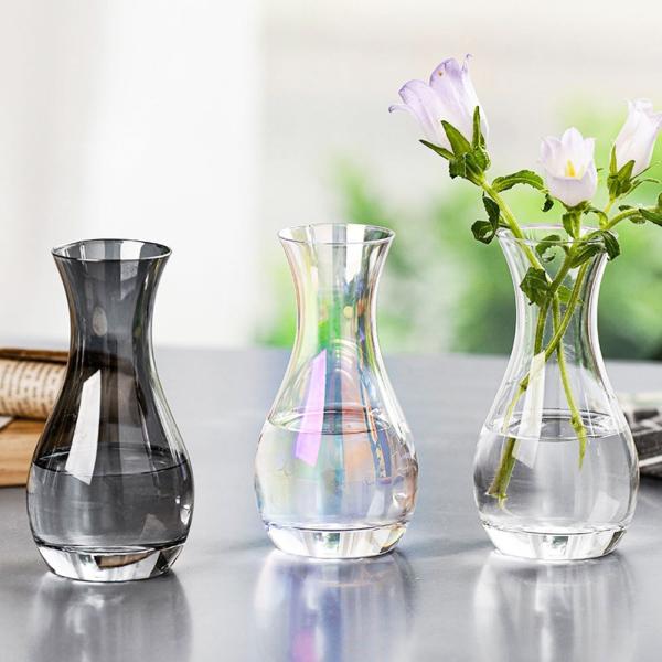 モダンさとレトロさを兼ね備えたデザインがお花を引き立てるガラス花瓶(フラワーベース)です。角度によってわずかにグラデーション感を感じさせるガラス花瓶(色;オーロラ)がお部屋を少しだけ可愛くします。人の手による手吹き工程で製作された美しく小型で可愛いフラワーベースです。