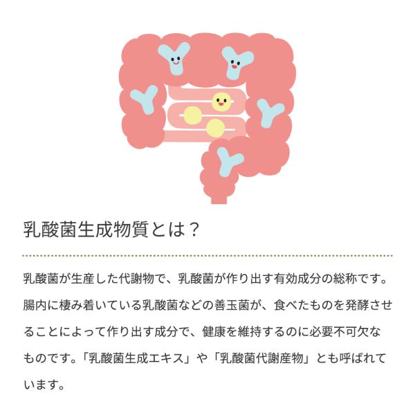 ・ヨーグルトなどの生きた乳酸菌ではないため、胃酸や胆汁に負けずに腸まで到達し、腸内環境のバランスを整えます。