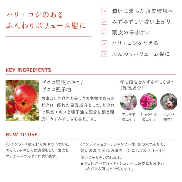 [ 国内正規品 ] お顔のケアと同じように、頭皮をサポートするエイジングケア*コンディショナー。美容成分豊かなザクロの恵みで髪と頭皮にみずみずしい潤いを与え、ふんわりコシのあるボリュームヘアに。フルーティ&スパイシーな香り。* 年齢に応じた頭皮・頭髪ケア