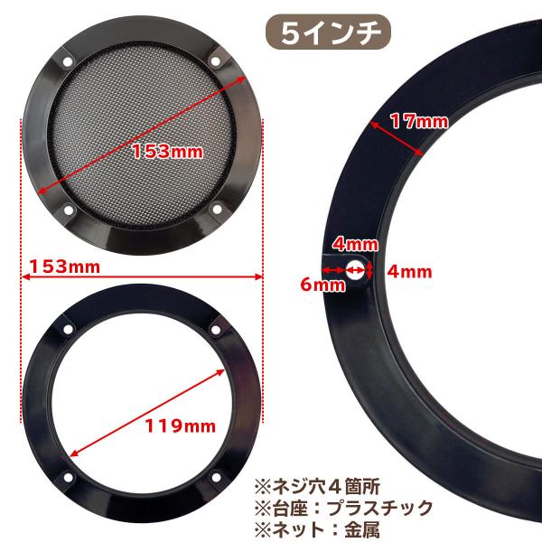 スピーカーカバー スピーカーグリル スピーカーグリルカバー スピーカーネット 5インチ 自作 車 汎用 2個セット ネグエス