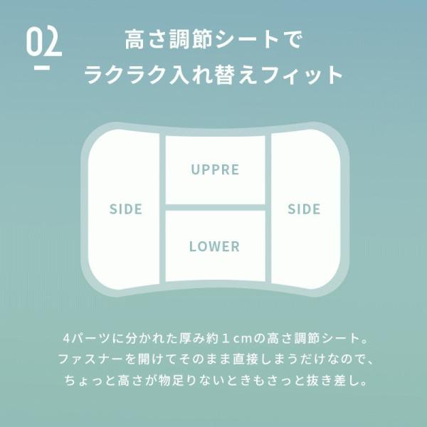 さらに4パーツに分かれた厚み約1cmの高さ調節シートも付属。出し入れするだけで簡単に高さ調節ができます。