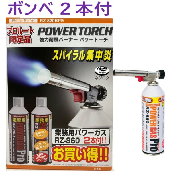 在庫あり即納】 トーチバーナー ・ パワートーチ RZ-820BP4 新富士バーナー RZ-820BP4 業務用ガスボンベ RZ-860 が2本付き ・ カセットバーナー