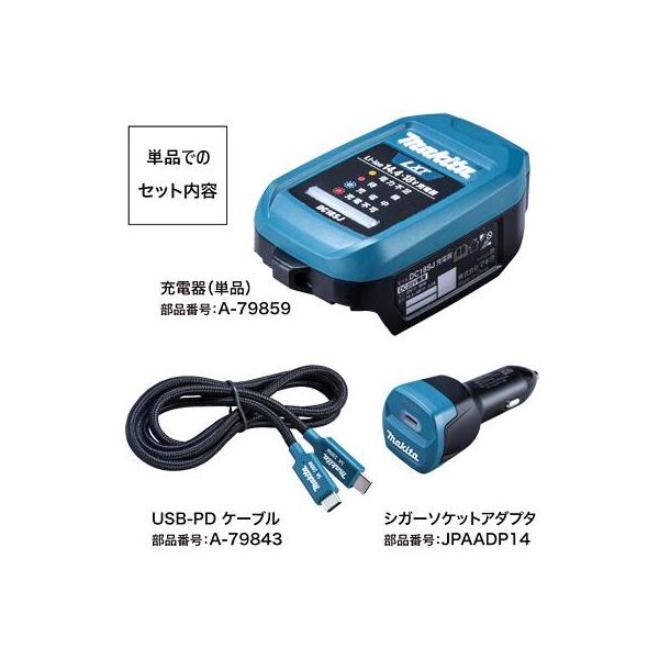 単品をセットとしました・在庫あり即納】 A-79859 + A-79843 + JPAADP14 マキタ 18V/14.4V 自動車用充電器 DC18SJ 同等セット