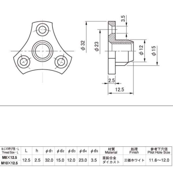 ・アジャスター、キャスター等の取り付け用で、外周に突起部を付けて共回りやゆるみ、抜けを防止した打ち込み脚用ナットです。