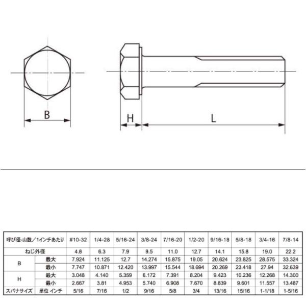 ステンレス 六角ボルト UNF 5/8-18X1'1/4L(L寸は首下表記です)