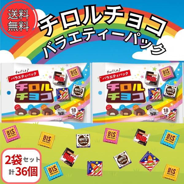 チロルチョコ バラエティパック 18個入り 2袋 計36個 チロル チョコ ミルク ビス アーモンド ホワイト&クッキー 送料無料