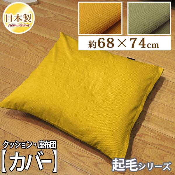 クッションカバー 68×74cm 無地 起毛 コーデュロイ 座布団カバー 角形 大判 綿100% ファスナー付 日本製 カバー 来客用 普段使い
