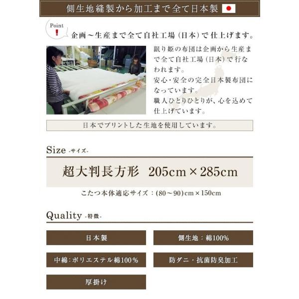 こたつ布団 掛け布団 超大判長方形 厚掛 ポリエステル綿 日本製