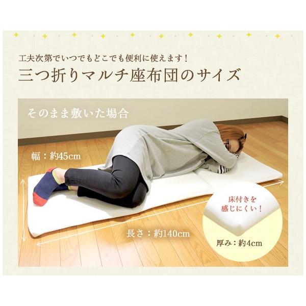 伸ばして使用すれば、長座布団にも、ごろ寝マットにもなります。