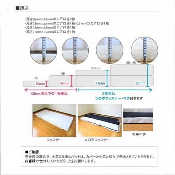 オーダーメイド エアロ マット 95×208cm 以下 約7.3cm芯厚 日本製 別注 サイズ変更可 高反発 体圧分散 マットレス