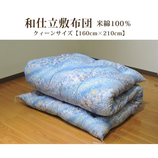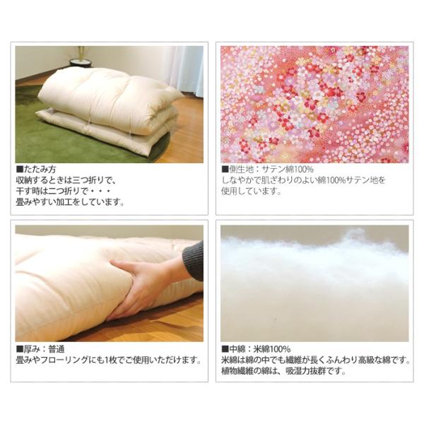 敷布団 日本製 米綿100% クイーン 花柄 綿100% サテン 吸湿性 和布団 綿布団 ロング 敷き布団 和ふとん 寝具 べいめん