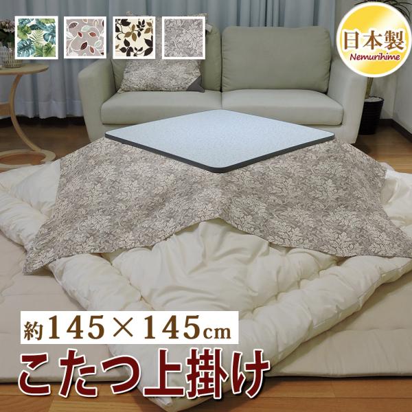 こたつ布団カバー 上掛けタイプ 小判正方形 145×145cm リーフ マルチカバー こたつ掛カバー 汚れ防止 綿100% 日本製