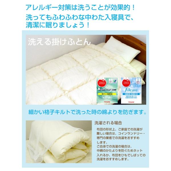 ダニ・アレルギー対策には、洗える布団であることが一番効果的です。