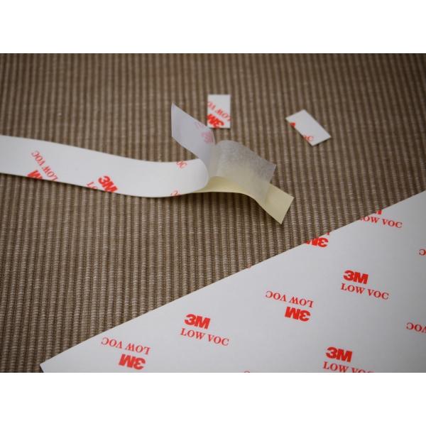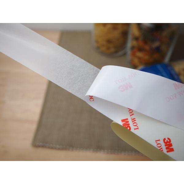強化不織布を基材として、その両面に強力接着で低VOCタイプのアクリル系粘着剤の付いた両面テープです。