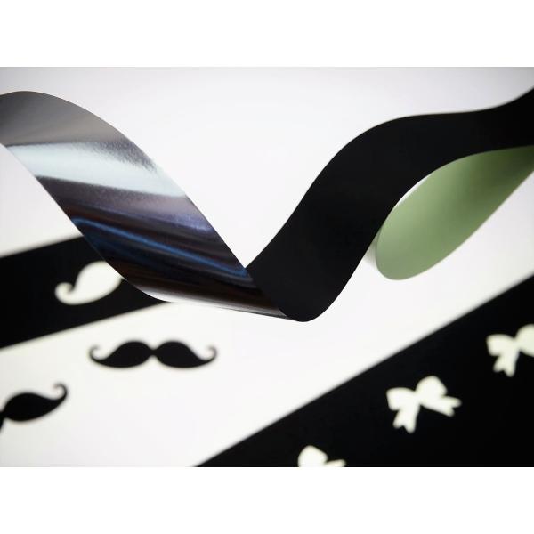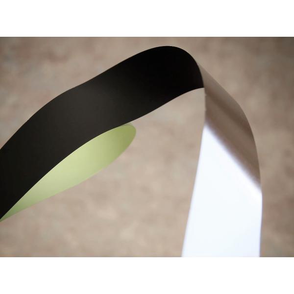 0.05mm厚で表面に黒色コートされたポリエステルフィルムを基材として、片面に強接着タイプのバイオマス粘着剤が付いたシートです。