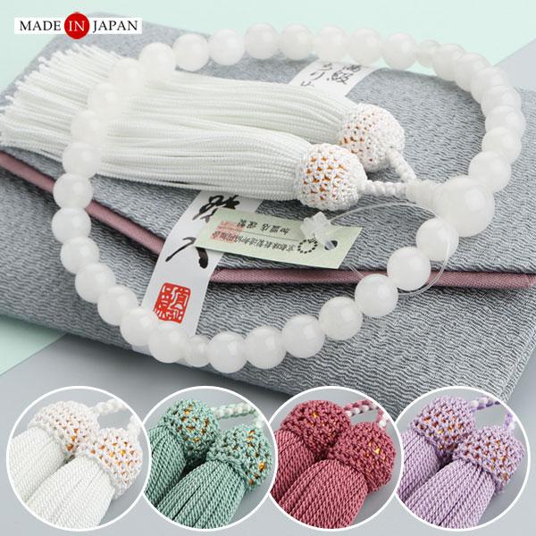 ≪選べる4種類≫数珠 女性用 約8ミリ 白オニキス 正絹房 数珠袋付き おしゃれ