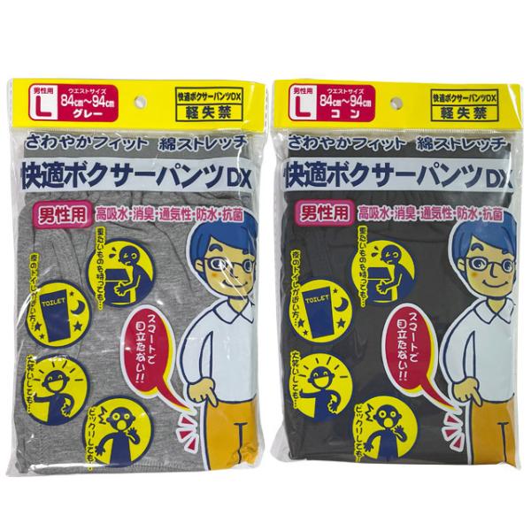 快適ボクサーパンツDX 1枚 男性用 しっきんパンツ男性 尿漏れパンツ 尿もれパンツ ちょいもれパンツ 尿失禁 大人 おもらし 軽失禁用品 消臭インナー 消臭下着 消臭パンツ ブリーフ トランクス メンズ 男用 男性用 父の日 敬老の日 誕生日 プレゼント 贈り物 ギフト 灰色 ネイビー 1個